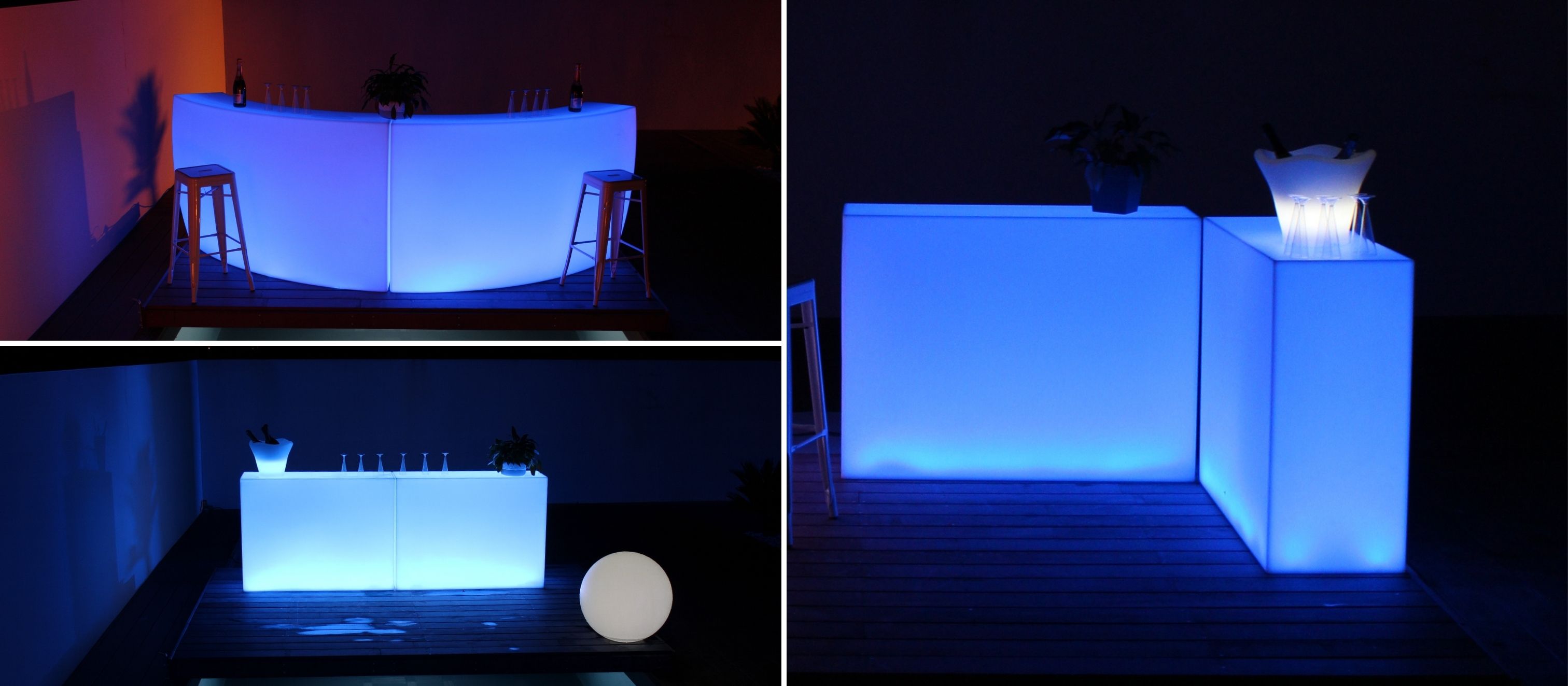 Le mobilier lumineux est idéal pour sublimer vos événements de nuit, de la couleur que vous souhaitez. La location de ce type de mobilier est de plus en plus prisée par les particuliers qui organisent leur mariage, leur anniversaire ou encore les sociétés qui réalisent une soirée du personnel, une soirée lancement de produit, …