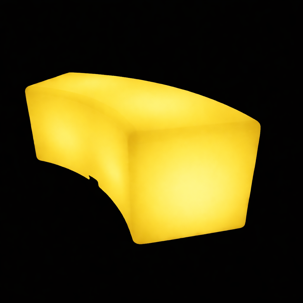 Ce banc lumineux LED arrondi extérieur sans fil permet de dessiner de manière originale un espace lounge. Résiste aux intempéries car étanche aux projections d'eau. On oublie toutes les contraintes de distance et de câbles électriques. Ce banc lumineux arrondi pourra passer du jardin à l'intérieur de la maison car rechargeable sur batterie. Pratique, il peut s'utiliser comme table-basse ou banc lumineux.