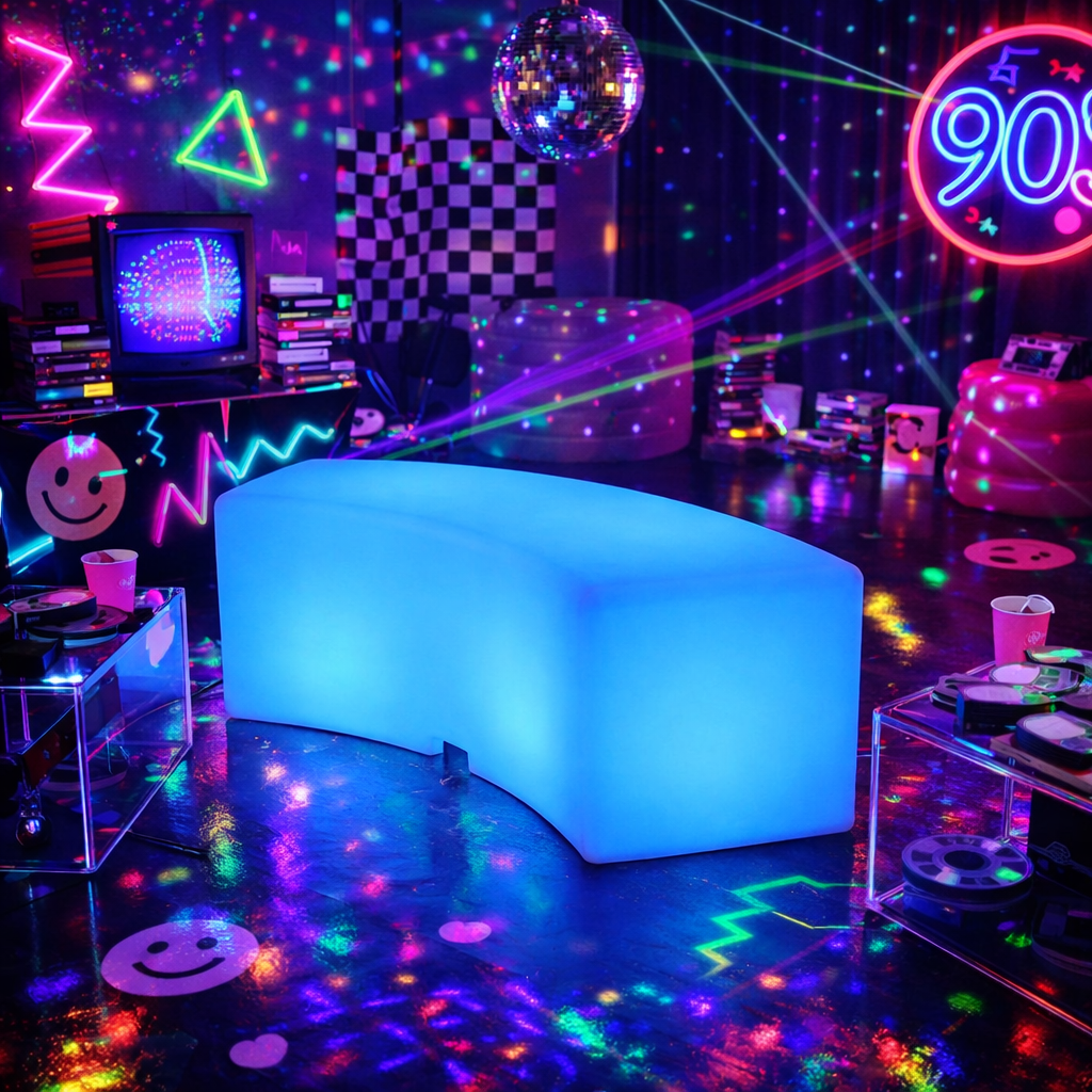 Astuce : Associez plusieurs bancs lumineux entre eux pour créer un cercle ou un serpentin. Nos bancs peuvent servir de table-basse ou de banc lumineux. Fonctionne également sur secteur en intérieur. Une seule télécommande suffit pour en piloter plusieurs.