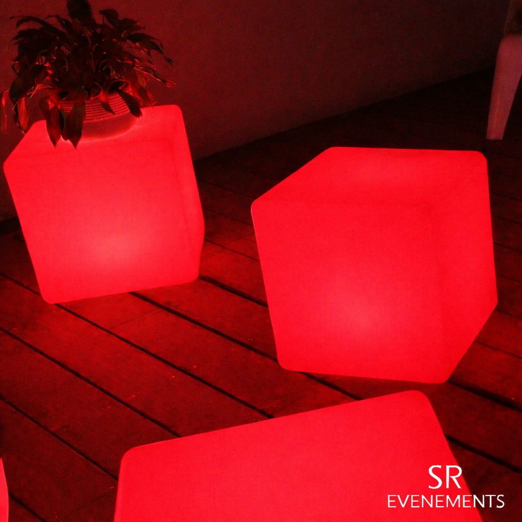 SR Événéments dispose d'un large panel de produits lumineux autonomes et étanches qui peuvent aussi bien être utilisés en intérieur qu’en extérieur. L’ensemble de ces produits fonctionne avec une télécommande infrarouge qui permet de sélectionner plusieurs programmes ou de choisir une couleur fixe. Ce type de mobilier propose un large choix de couleurs : jaune, orange, rouge, rose, violet, bleu, vert, blanc, … et permet de faire des fondus entre les couleurs plus ou moins rapides, ce qui en fait un produit phare pour les soirées zen par exemple.