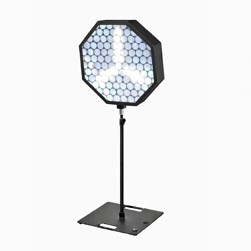 Avec sa forme octogonale distinctive, ce blinder LED devient un véritable élément décoratif à part entière. Utilisé seul ou en pack, il permet de créer des rappels graphiques percutants ou des installations lumineuses plus ambitieuses. Disponible avec ou sans pied Gravity, il s’intègre facilement à tous types de configurations : posé au sol, sur scène ou intégré dans un décor existant. Cette modularité en fait un outil idéal pour les prestations événementielles temporaires comme pour les installations plus fixes.
