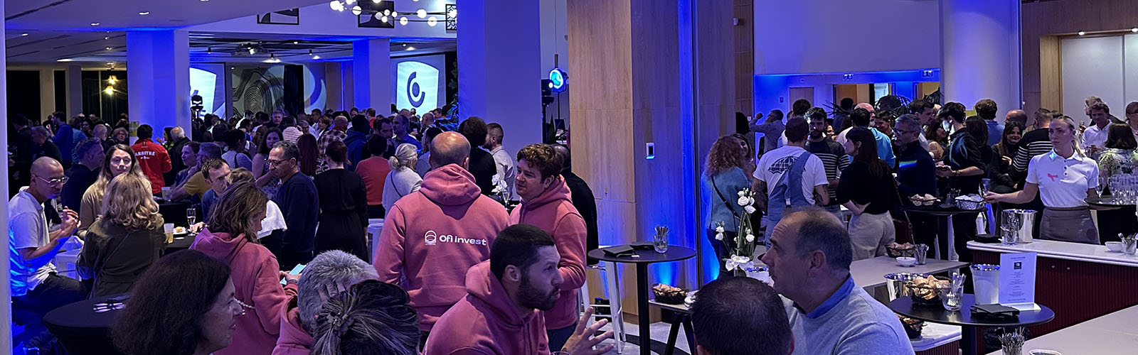 Nous avons transformé le Mercure en un espace accueillant et fonctionnel. Notre équipe a mis en place un mobilier événementiel comprenant des tabourets hauts et des mange-debout, permettant aux convives de profiter d’un environnement convivial et élégant. La mise en lumière a été minutieusement étudiée pour mettre en valeur les différentes zones, du discours du président au coin photobooth. Nous avons utilisé des projecteurs LED réglables pour créer une atmosphère chaleureuse tout en accentuant les moments forts de la soirée.
