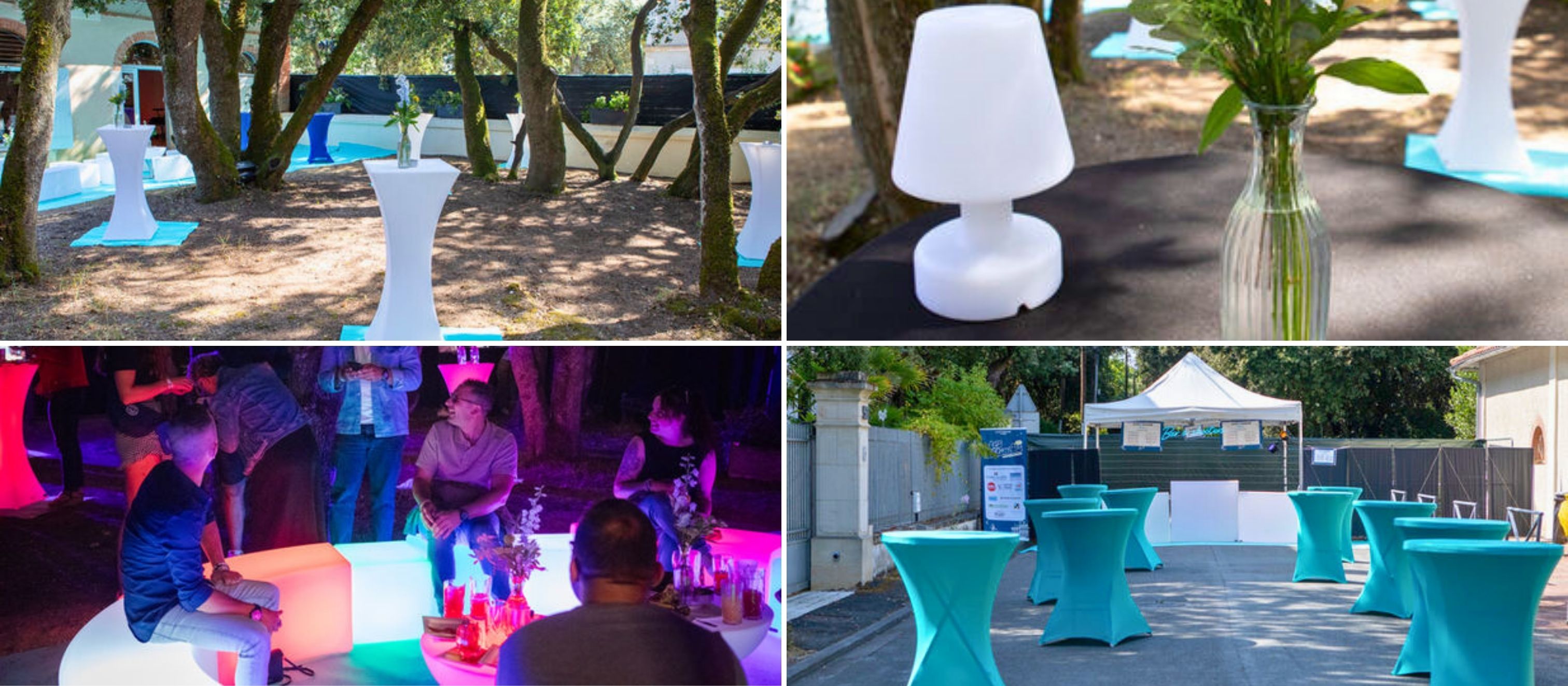 Le mariage du mobilier standard et lumineux a permis de créer une atmosphère unique, à la fois chic et décontractée. Les couleurs changeantes et les reflets lumineux ont sublimé les espaces invités et VIP, renforçant l’identité estivale et conviviale de l’événement.