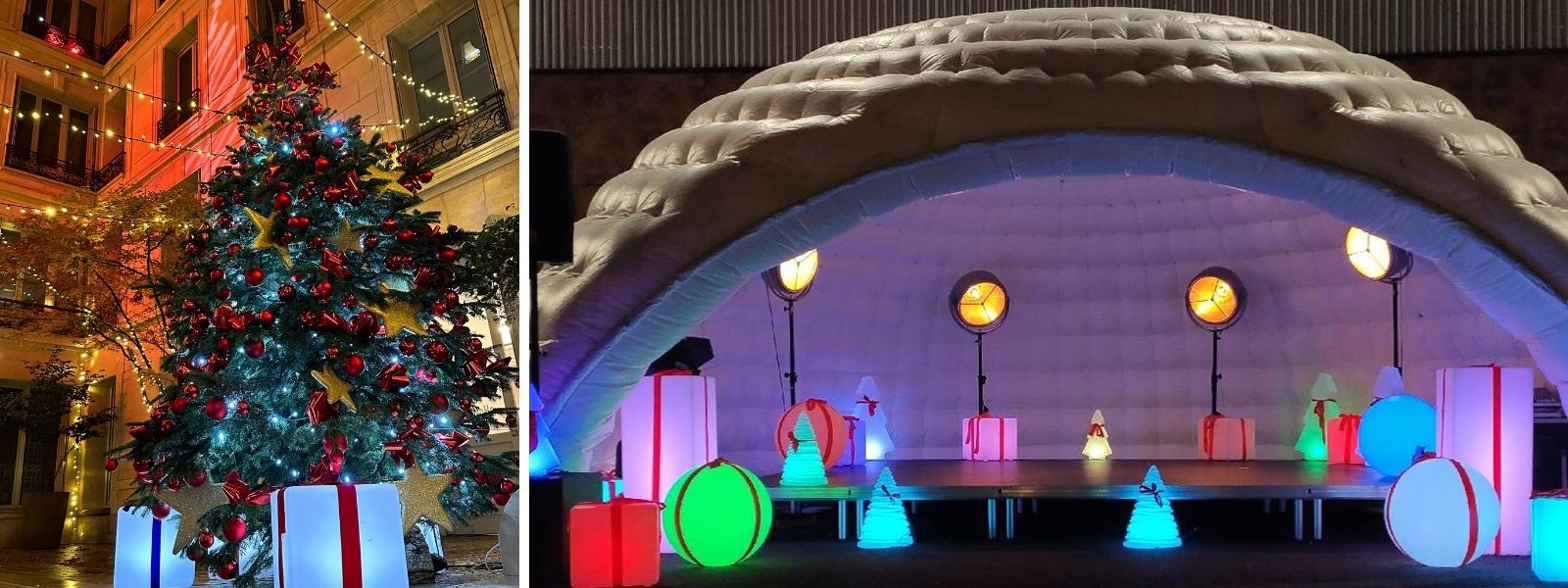 Pour votre plus grand confort, un caisson insonorisé est suggéré avec le gonfleur installé en continu. Avec ce dôme gonflable hors du commun, nous vous proposons la location des spots leds indirects adaptés à l'intérieur comme à l'extérieur afin de sublimer cet élément.