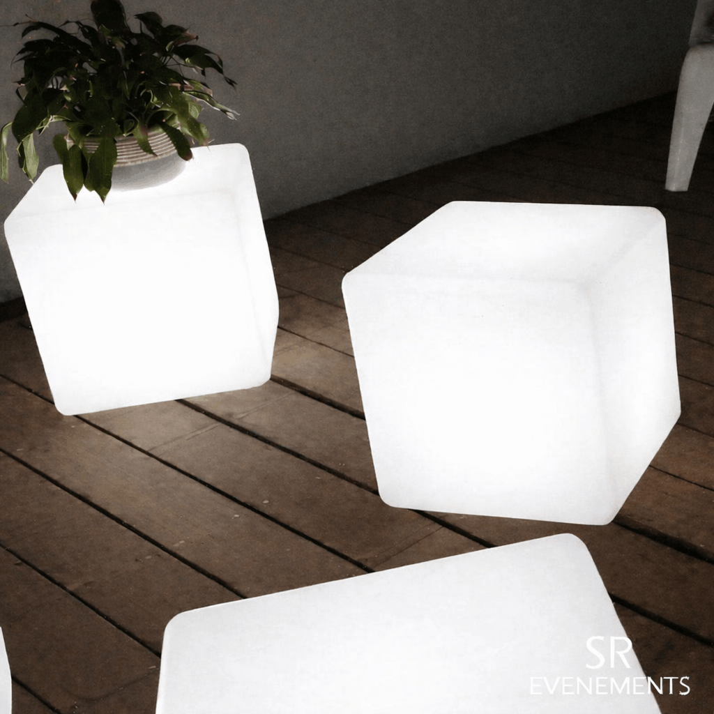 SR Événéments dispose d'un large panel de produits lumineux autonomes et étanches qui peuvent aussi bien être utilisés en intérieur qu’en extérieur. L’ensemble de ces produits fonctionne avec une télécommande infrarouge qui permet de sélectionner plusieurs programmes ou de choisir une couleur fixe. Ce type de mobilier propose un large choix de couleurs : jaune, orange, rouge, rose, violet, bleu, vert, blanc, … et permet de faire des fondus entre les couleurs plus ou moins rapides, ce qui en fait un produit phare pour les soirées zen par exemple.