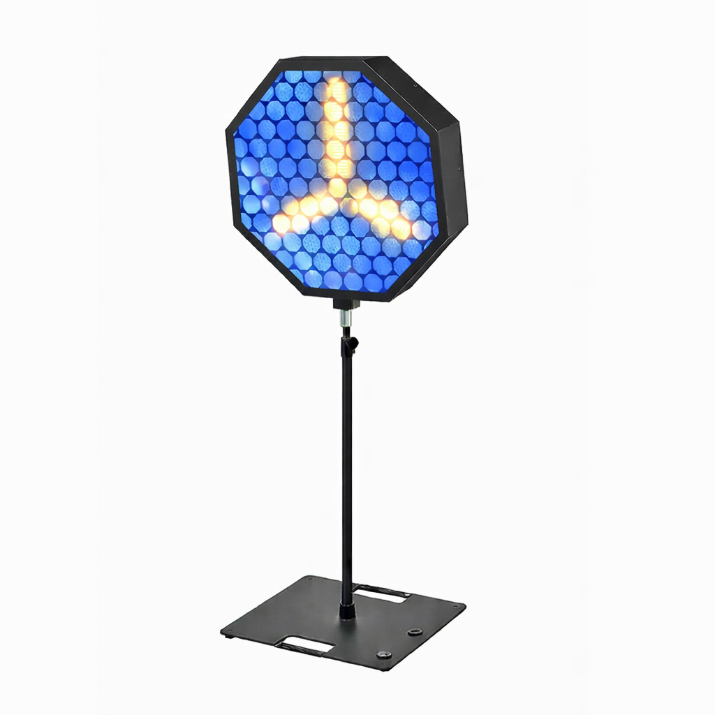 Avec sa forme octogonale distinctive, ce blinder LED devient un véritable élément décoratif à part entière. Utilisé seul ou en pack, il permet de créer des rappels graphiques percutants ou des installations lumineuses plus ambitieuses. Disponible avec ou sans pied Gravity, il s’intègre facilement à tous types de configurations : posé au sol, sur scène ou intégré dans un décor existant. Cette modularité en fait un outil idéal pour les prestations événementielles temporaires comme pour les installations plus fixes.