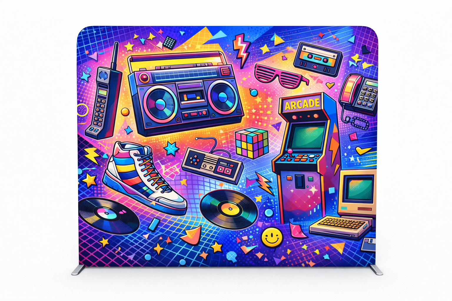 Nos backgrounds sont conçus en lycra extensible de qualité professionnelle, une matière reconnue pour son rendu tendu, sans plis, et sa grande résistance. Le tissu épouse parfaitement la structure, garantissant une finition nette et élégante, même après de multiples utilisations et transports.