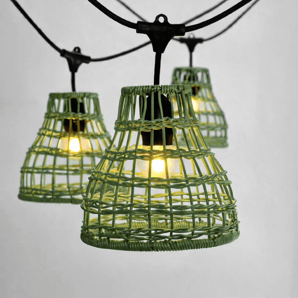 Location Guirlande guinguette 5m - Abat jour osier Vert