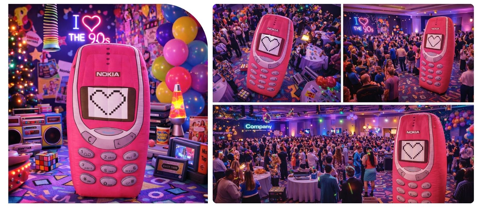 Icône absolue des années 2000, le Nokia 3310 fait son grand retour… dans un format totalement démesuré et résolument festif. Avec ses 3 mètres de hauteur, ce téléphone portable rose gonflable attire immédiatement le regard et plonge petits et grands dans une vague de nostalgie joyeuse. Disponible à la location en prestation clé en main par SR EVENEMENTS, il peut être livré partout en France, pour tous types d’événements.
