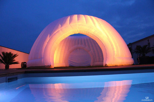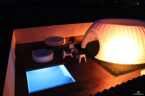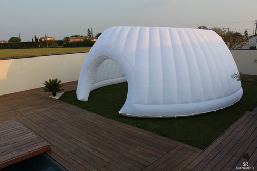 Ce dôme panoramic gonflable design et moderne, permet donc une liberté et une aération de l'espace. Idéal pour y établir un bar central, un espace lounge ou un véhicule de démonstration en intérieur. Nous préconisons la mise en place de cette tente hors du commun dans des espaces relativement grands : parcs des expositions, concessions automobiles, zeniths, halls d'accueil, salles municipales, conservatoires...