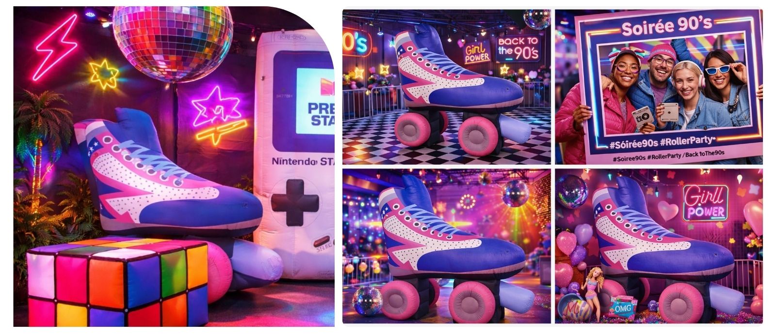 ? Faites de votre événement un souvenir inoubliable et plongez vos invités dans l’univers festif des années 90 avec notre roller gonflable lumineux XXL. Contactez-nous dès maintenant pour réserver !