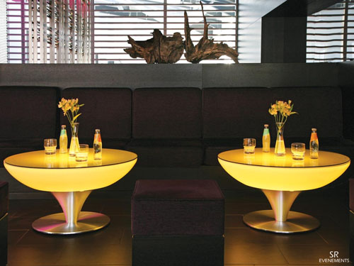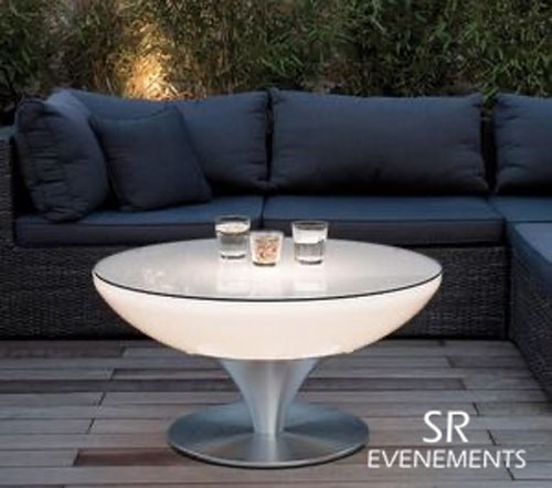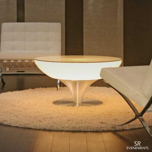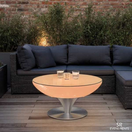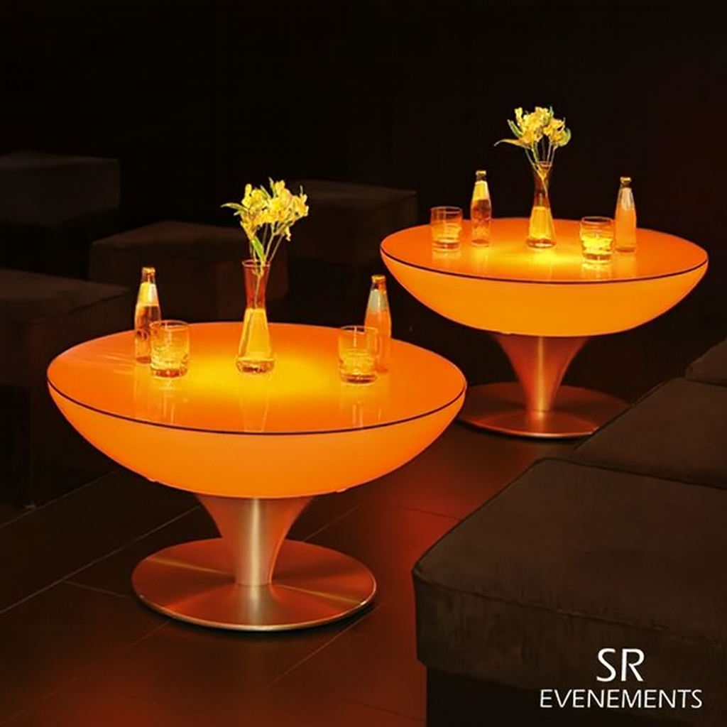 La Table Lumineuse Ronde LOUNGE  offre la meilleure combinaison possible entre table et éclairage pour une utilisation sur votre événement. Le pied est en aluminium anodisé et le plateau en matériau synthétique translucide. L'intérieur du plateau renferme une ampoule qui fait rayonner toute la table et son environnement. Ce système permet d'une part d'économiser l'installation d'un éclairage coûteux au-dessus de la table et d'autre part de créer une ambiance originale au charme unique qui invite au bien-être et à la détente.