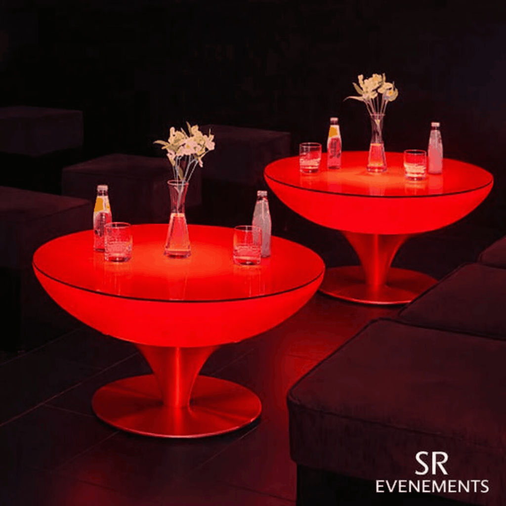 La Table Lumineuse Ronde LOUNGE  offre la meilleure combinaison possible entre table et éclairage pour une utilisation sur votre événement. Le pied est en aluminium anodisé et le plateau en matériau synthétique translucide. L'intérieur du plateau renferme une ampoule qui fait rayonner toute la table et son environnement. Ce système permet d'une part d'économiser l'installation d'un éclairage coûteux au-dessus de la table et d'autre part de créer une ambiance originale au charme unique qui invite au bien-être et à la détente.