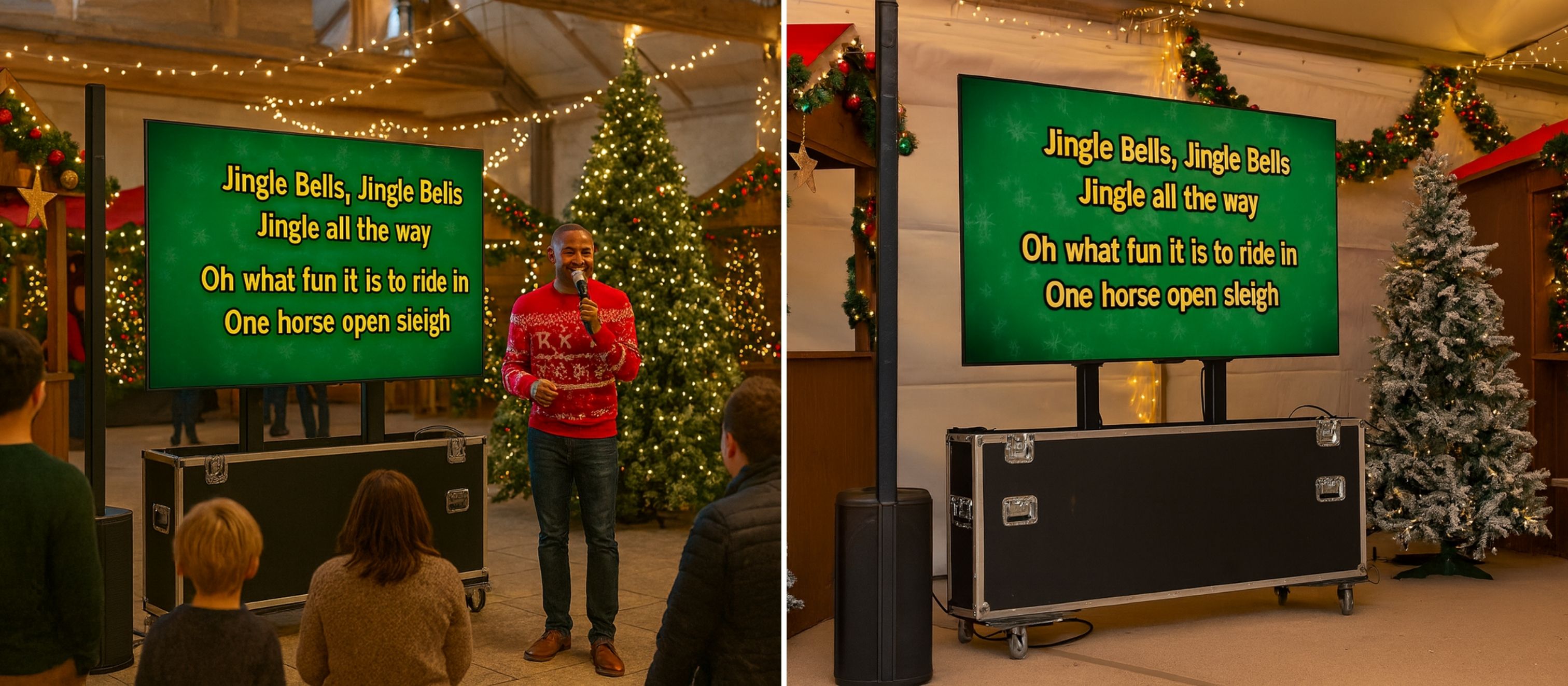 Faites entrer la magie de Noël dans votre marché ou votre salle avec notre TV lift karaoké géante — une animation festive, clé en main et 100 % conviviale !