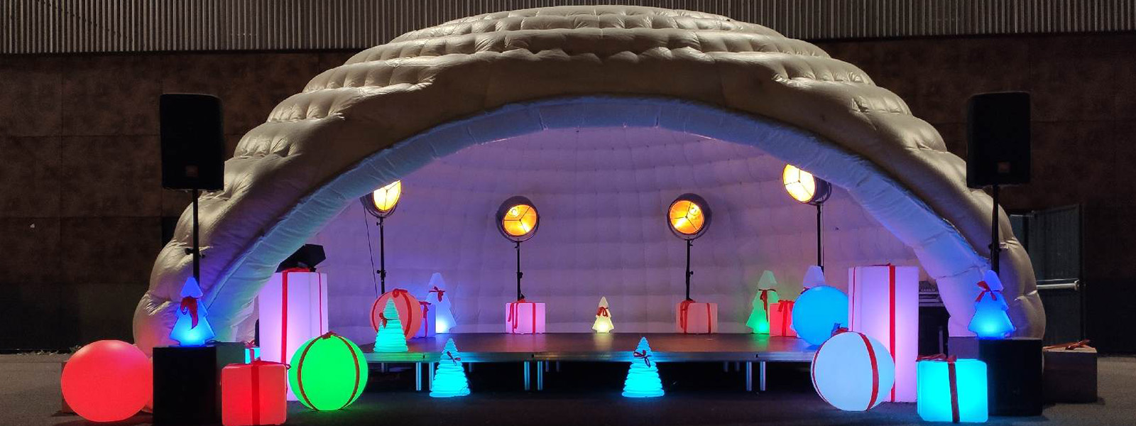 Pour votre plus grand confort, un caisson insonorisé est suggéré avec le gonfleur installé en continu. Avec ce dôme gonflable hors du commun, nous vous proposons la location des spots leds indirects adaptés à l'intérieur comme à l'extérieur afin de sublimer cet élément.
