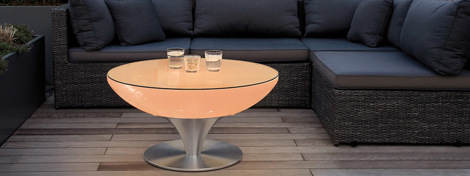 Parfaite pour agencer un espace professionnel, la table basse lounge lumineuse donne une ambiance tamisée chic et raffinée. Totalement étanche, elle peut être utilisée en extérieur. Sans fil, sur batterie et controlable par une télécommande IRC, cette table basse s'installe facilement et très rapidement pour un effet surprenant.