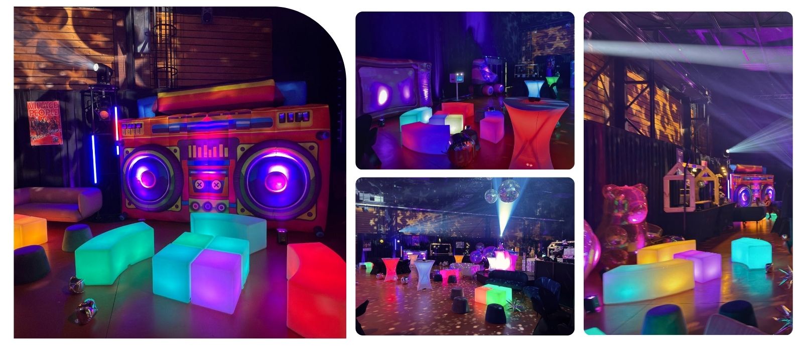 Pour compléter la décoration, nous mettons à votre disposition du mobilier lumineux moderne, parfaitement adapté aux événements festifs :